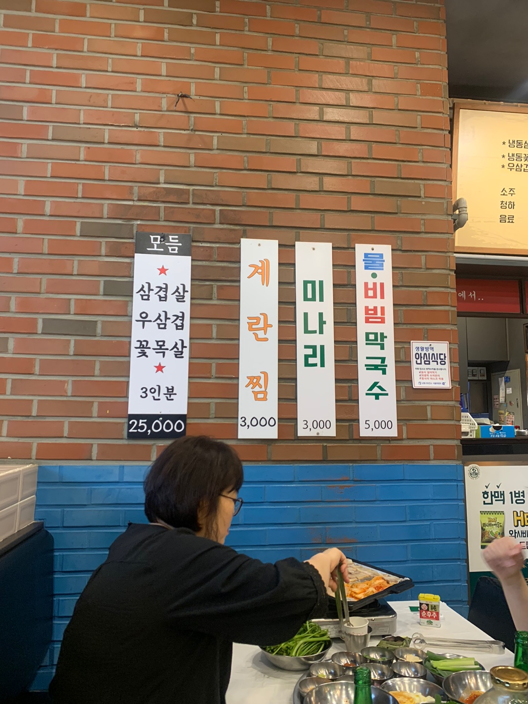 남녀 둘이 찌개도 먹고 술도 먹고 고기도 5인분 가량 먹었지만, 가격은 곱창 먹을 때의 절반도 안 나오네요. (모둠 곱창 기준 보통 3인분 먹는 저희예요.)