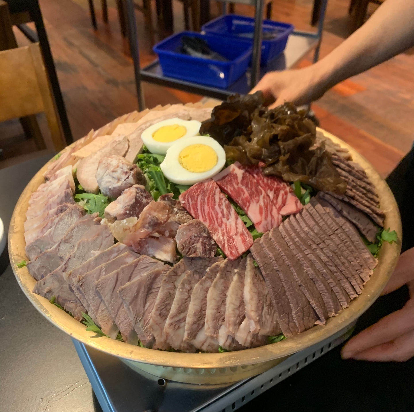 드디어 어복쟁반이 등장했습니다. 과연 무슨 맛이고 고기의 식감을 어떨지, 그리고 육수와의 조화는 어떨지 너무너무 궁금했어요. (남은 육수에 냉면 사리 추가는 국룰이라고 합니다.)