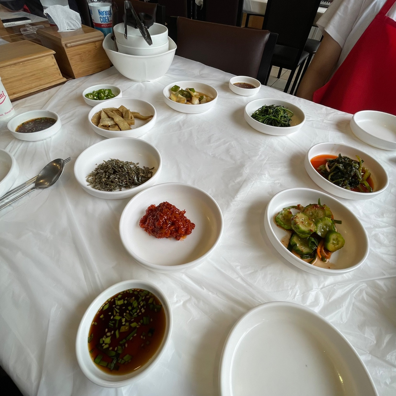 앉자마자 밑반찬 세팅이 쫙 시작됩니다. 대략 일곱 가지 정도의 밑반찬이었는데 모두 감칠맛 나고 맛있었어요!