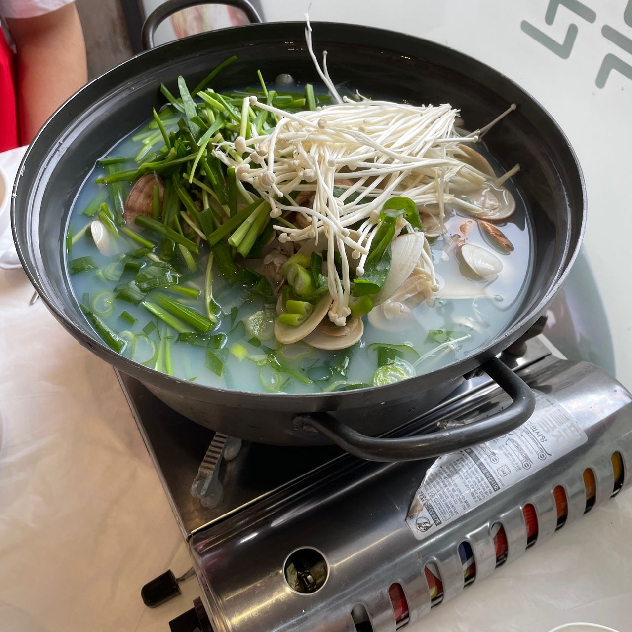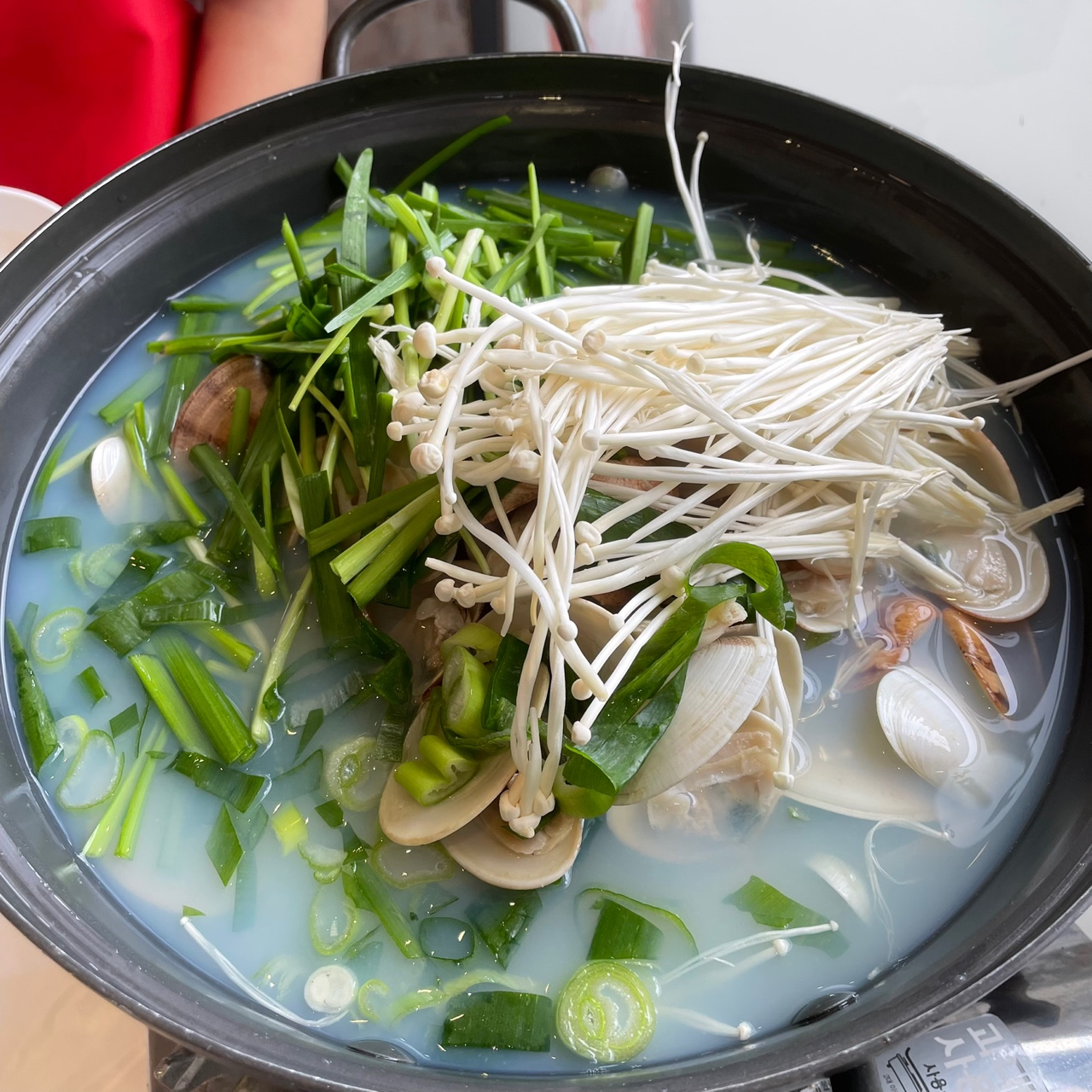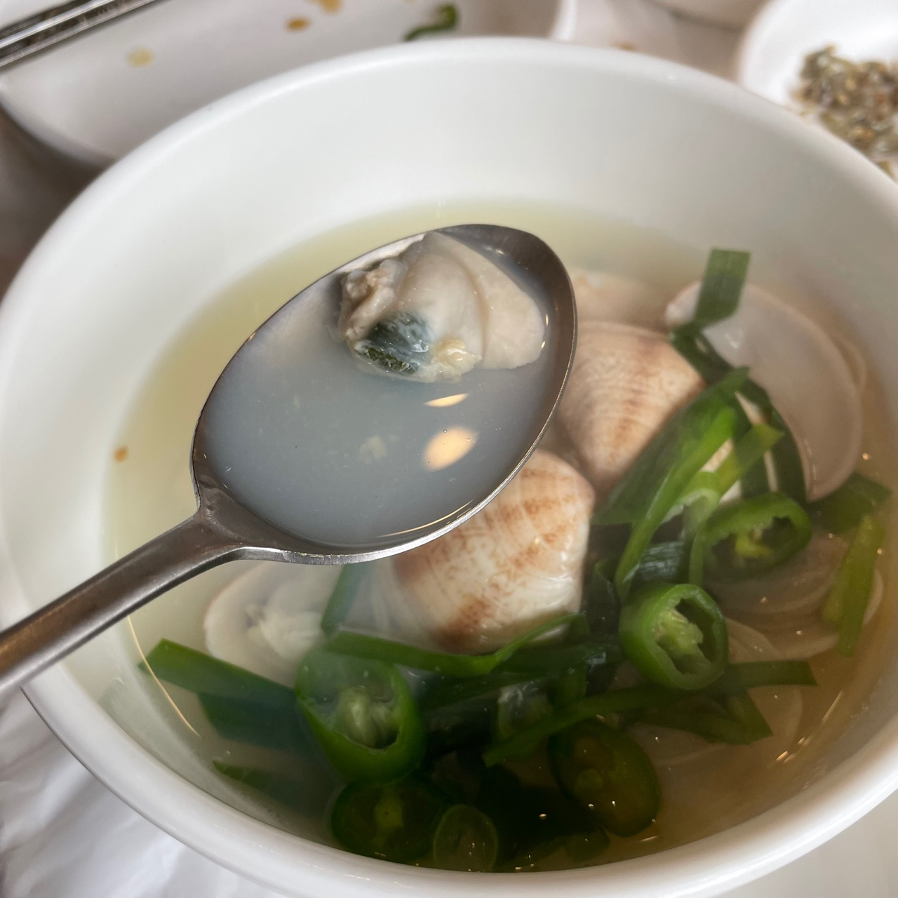 째복탕은 국물맛은 바지락탕의 시원한 느낌보단 거제/통영에서 먹었던 재첩국과 비슷했어요. 그 자체만으로도 재첩국처럼 뽀얀 국물이 우러나더라고요. 시원하고 깊은 맛이 일품인, 해장에 딱 적합한 음식이에요.