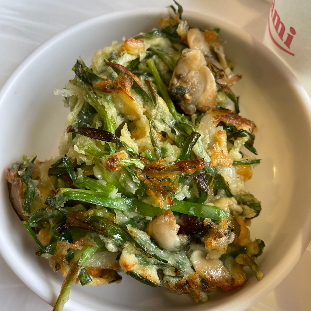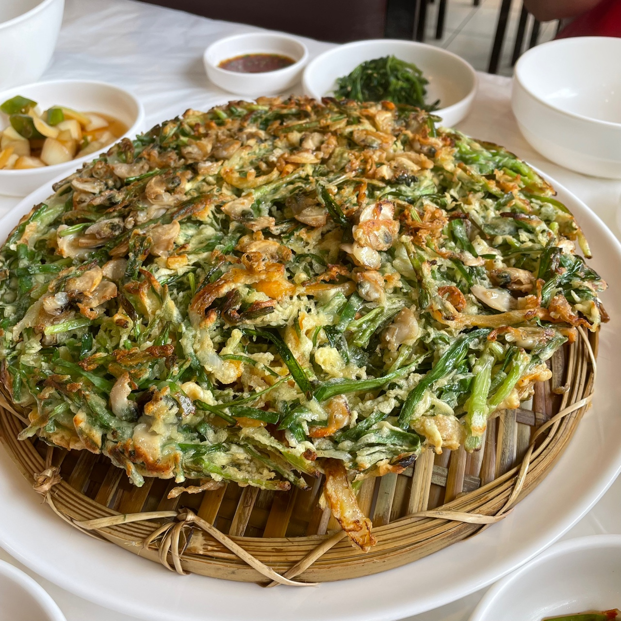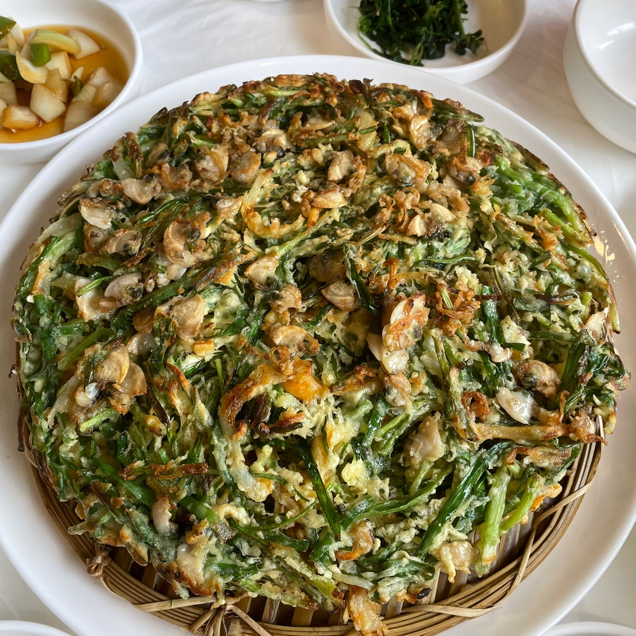 딱 보기에도 맛있죠? 바삭하면서도 파의 결이 모두 살아있고, 생각보다 밀가루가 적게 들어가있어서 덜 느끼하면서도, 더 몸에 좋은 그런 느낌! 절임 양파와 함께 먹는 것도 일품이지만, 밑반찬 중 하나인 식해와 먹으면 꿀맛이에요.