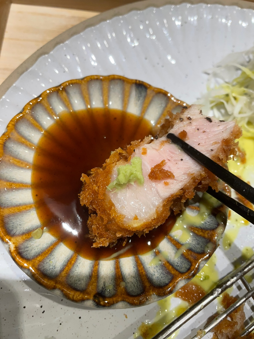 두 번째부터는 고추냉이에 돈까스소스! 이게 더 맛있네요 호호!