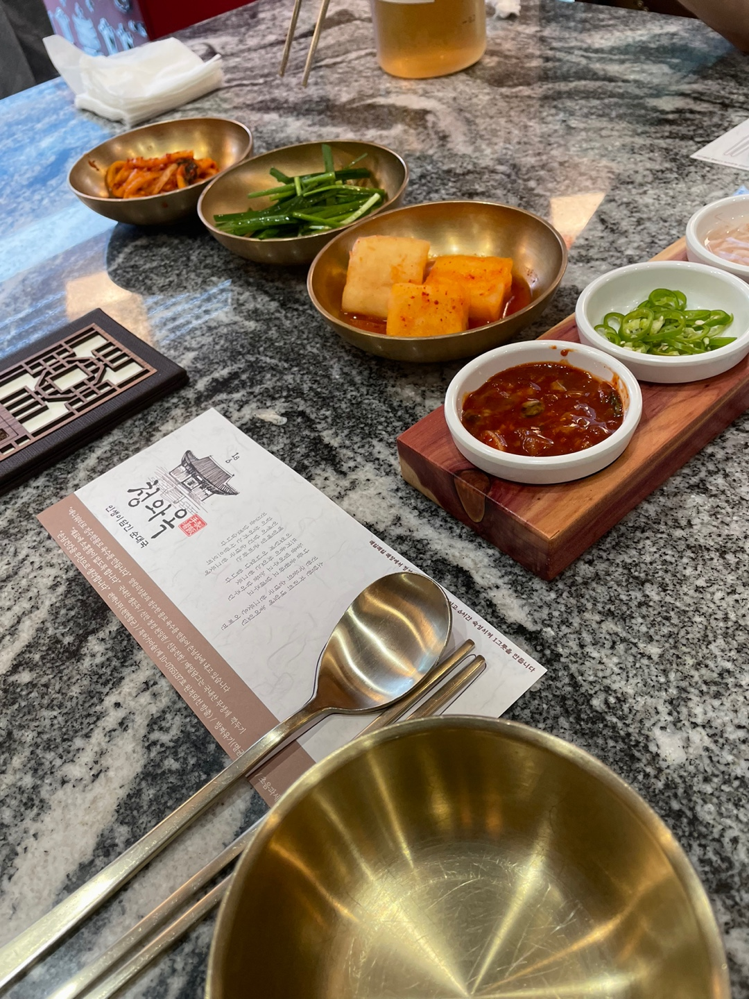 한국적인 인테리어와 낮은 조도의 조명이 우리를 감쌌지요. 특히, 보통 순대국밥집과는 달리 조금 고급스럽다는 느낌이 들었어요. 밑반찬만 해도 몇 가지였으니까요. (시원한 깍두기와 젓갈이 별미였어요.)