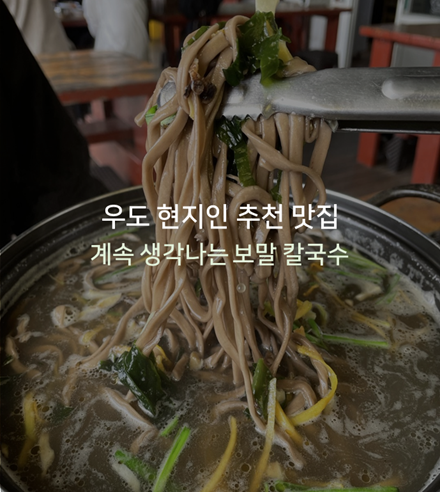 저희는 현지인 분께 미리 문의를 드려서 맛집을 찾아놨답니다. 전동차를 타고 해안도로를 10~15분 정도 달리니 바로 보이는 바로 그곳, 우도 현지인 추천 보말 칼국수 맛집인 '파도소리 해녀촌'입니다!