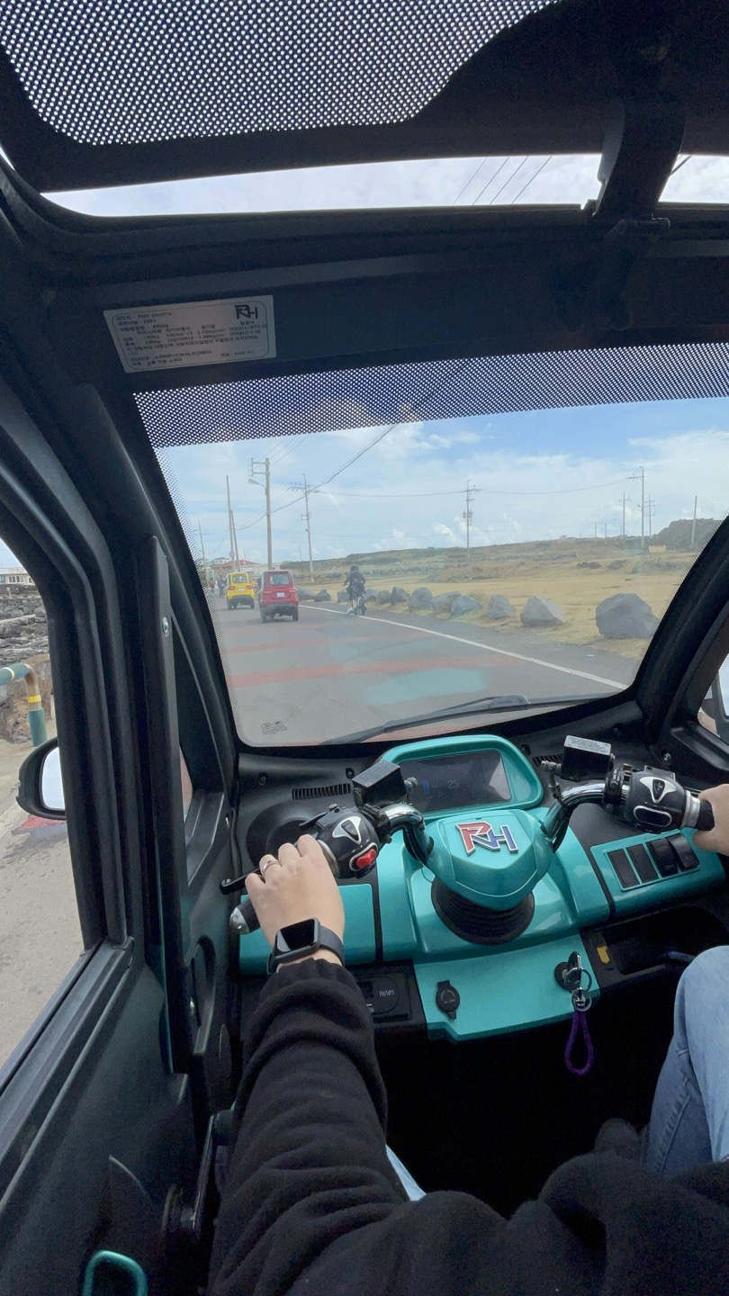 작년 가파도에 이어 올해는 우도에 도전했는데요! 우도는 스쿠터를 개조한듯한 2인용 전동차가 주로 다니더라고요. 전동 바이크를 타는 분들이 (저 포함) 대다수이긴 했어요.