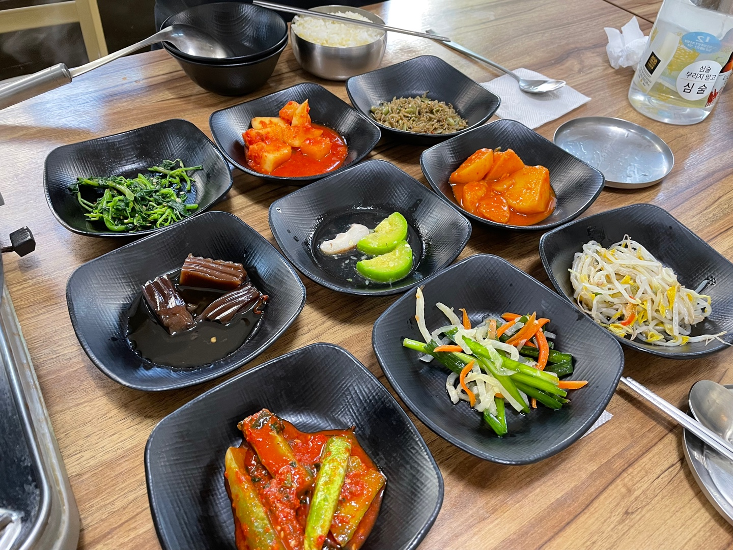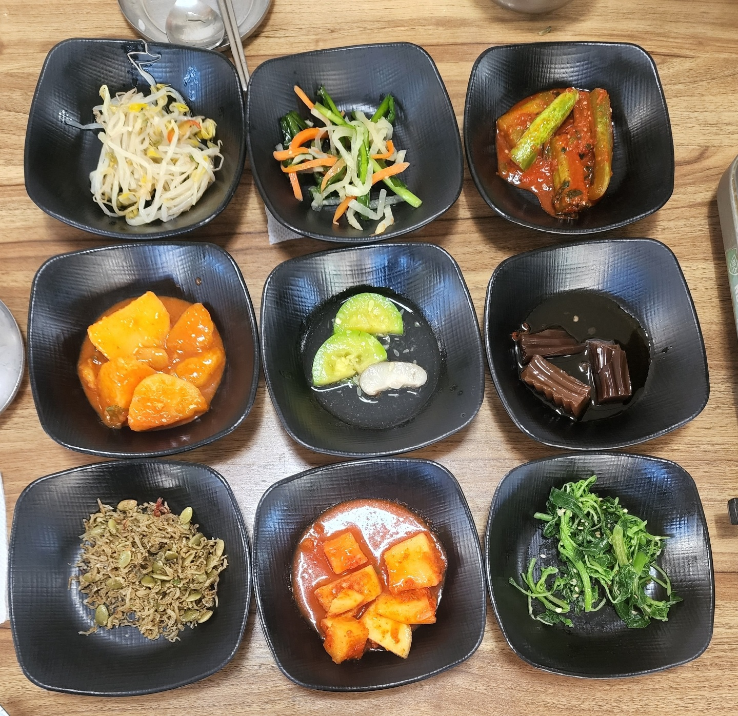 메인인 순두부 전골만큼이나 마음에 들었던 건 바로 밑반찬이에요. 간이 좀 있는 편이었는데 하나같이 감칠맛 있고 맛있어서 밥 한 공기 뚝딱 GO! 가격 대비 차림도 좋고 정성도 있어서 좋았어요! 나물부터 김치까지 밑반찬 정말 강추! 나름 9첩 반상이네요!