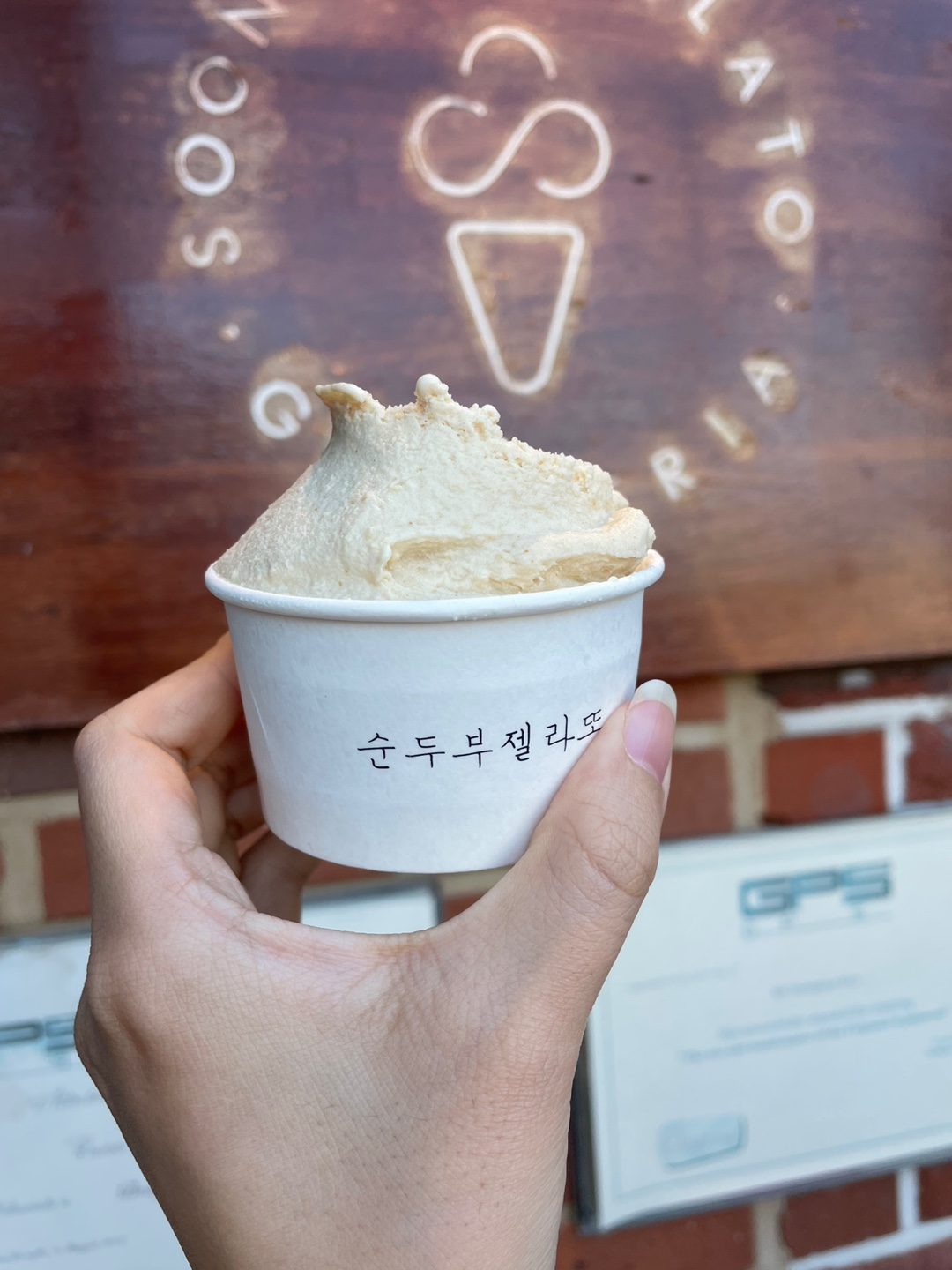 인절미 젤라또랑 순두부 젤라또를 먹어봤는데, 그냥 오리지널이 제일 낫네요. 별미였어요! 먹어볼 만 한데, 냉정하게 줄 설 정도는 아니라고 봅니다!