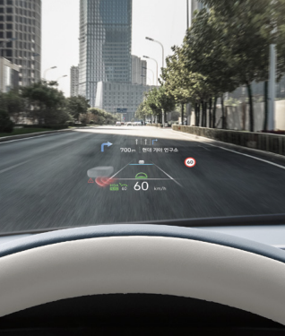 아래처럼 헤드업 디스플레이로 전면부 유리창을 통해 차량 주행정보를 확인할 수 있습니다!