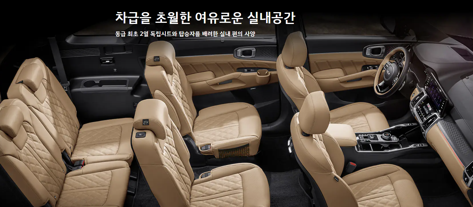 실내는 중형 SUV에서는 찾아볼 수 없을 정도로 고급스럽고 넉넉한 공간을 자랑합니다. (공간의 우수함 측면에서는 싼타페를 압도할 정도라고 하네요.)