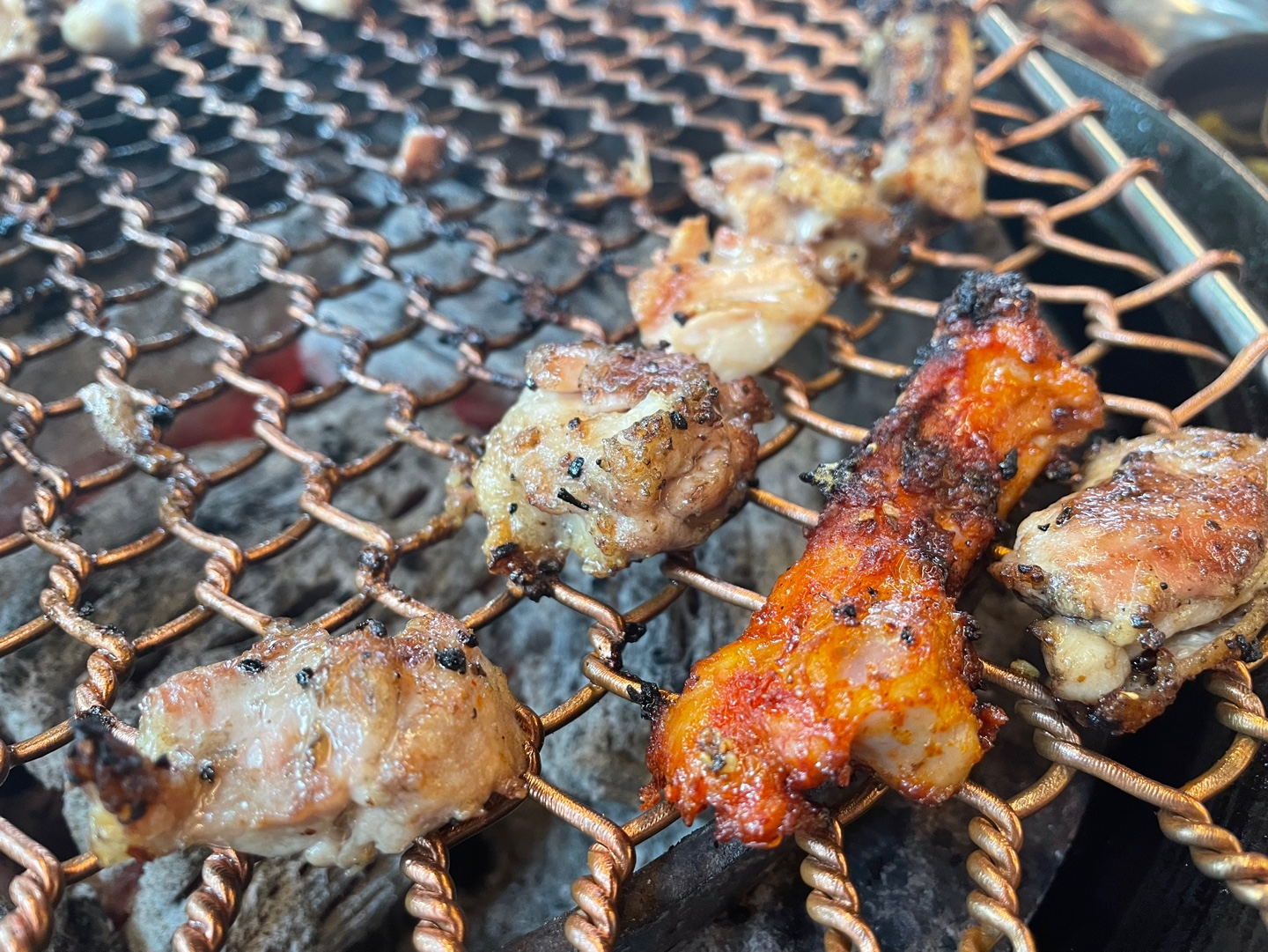 세 가지의 맛 중 가장 맛있는 건 '소금구이'였고, 그 이유는 양념되지 않은 껍질이 숯불과 만나 바삭해지면서 육즙과 기가 막히게 어울리기 때문이에요. 의외로 간장 양념은 심심했고 고추장 구이도 특색 있는 맛은 아니었어요!