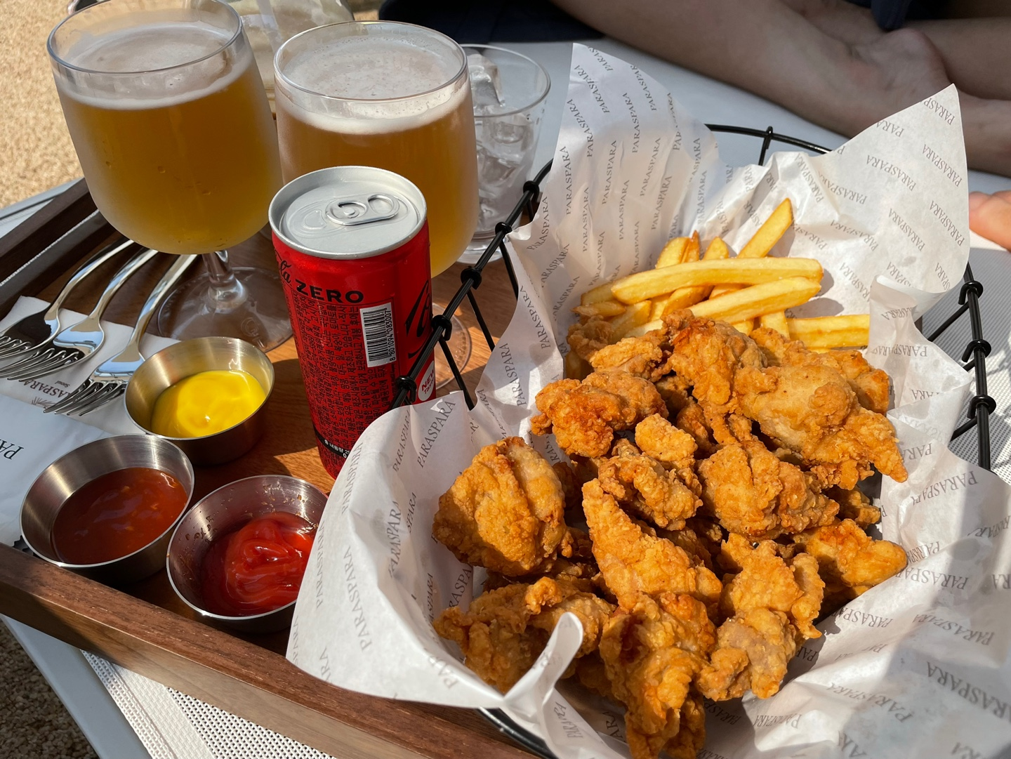 치킨은 꿀맛이었습니다. 맥주 2잔, 제로콜라랑 치킨까지 해서 한 7만 원 정도 나왔네요.