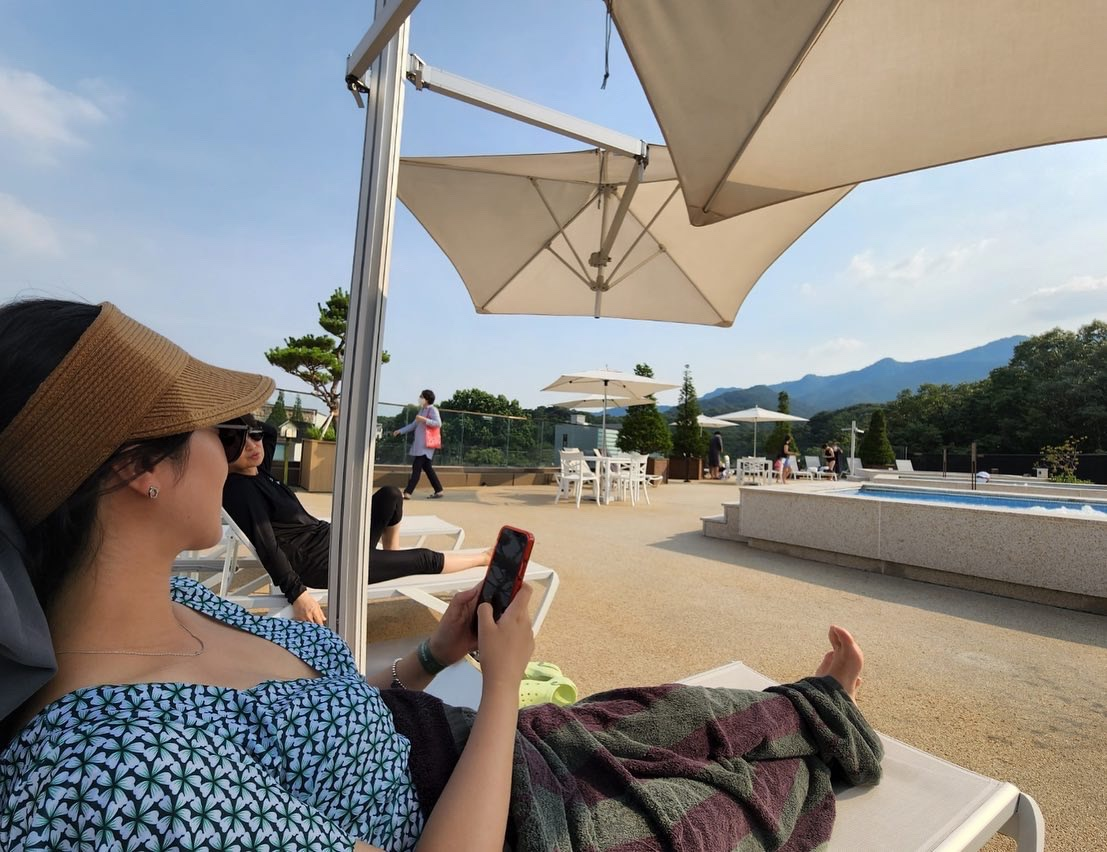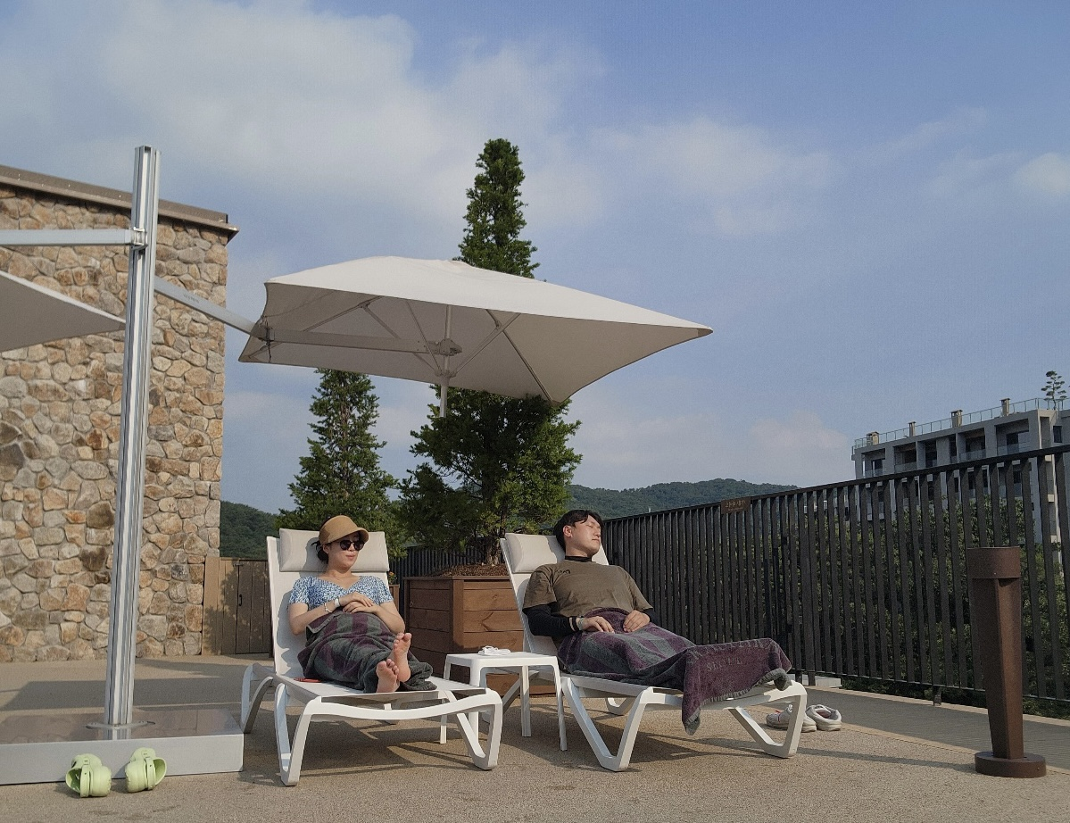 📷 쌀쌀해지는 가을이나 겨울에 더 좋을 것 같긴 한데, 시원한 산바람과 산 뷰를 누릴 수 있어요. 무엇보다 사람들이 없어서 그런지 썬베드에서 30분이나 잤네요.