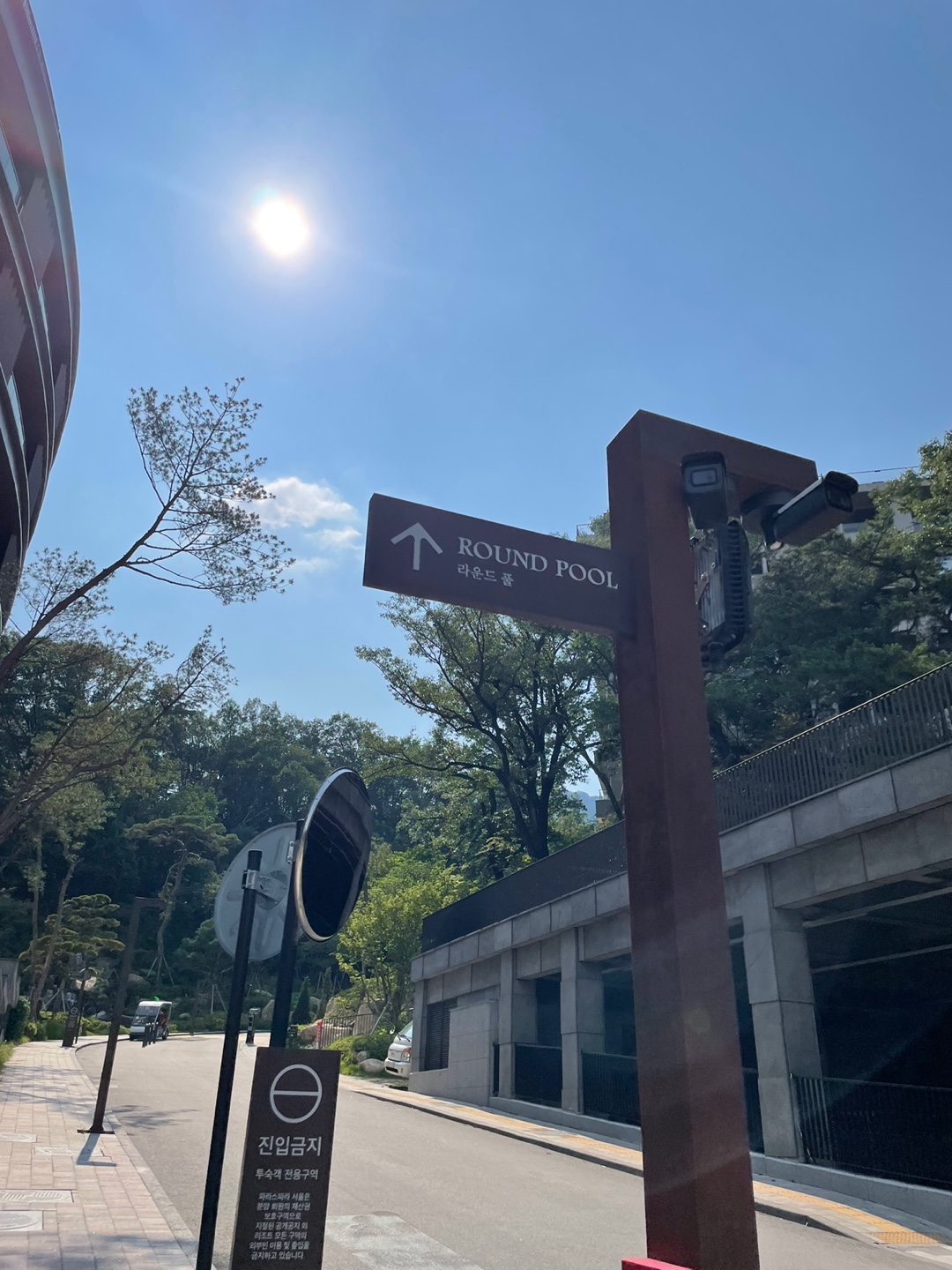 투숙객이라면 무료로 사용 가능한 야외수영장 '라운드 풀'로 향해봅니다.