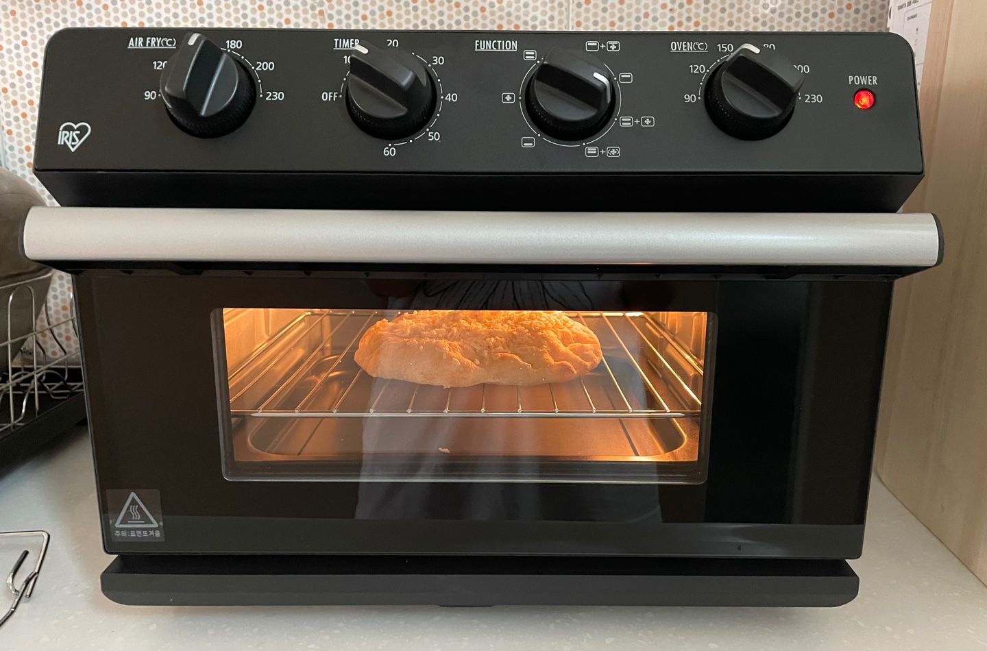 아이리스 에어프라이어 제품은 오븐 겸용이니 빵류도 겉바속촉 조리가 가능했어요. (✍🏻기존 에어프라이어는 수분이나 기름기가 없는 빵류 가열에는 전혀 적합하지 않았어요. 가열 후 퍽퍽하고 딱딱해지기 일수여서, 제과류는 무조건 오븐에 조리해야 하는 수고로움이 있었거든요.)