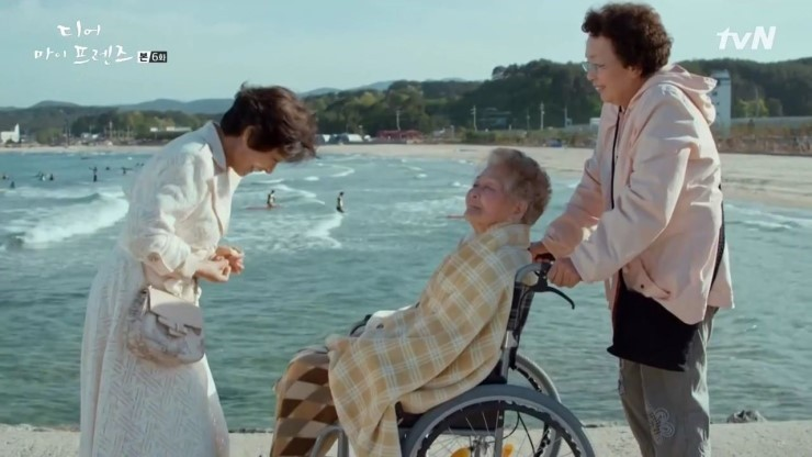 디어 마이 프렌즈는 2016년 방영한 노희경 극본의 드라마입니다. 작가도 작가지만, 연기로는 어벤저스라 불릴만한, 내로라하는 배우들이 대거 출연합니다. 대표적으로 김혜자, 나문희, 윤여정, 나문희, 김영옥, 주현, 박원숙, 신구 등이 하나의 작품에 뭉쳤습니다. 당시 고현정 배우는 이 드라마에서 본인이 막내이기에 미리미리 많은 걸 준비해드려야 한다고 너스레를 떨었는데요. 그럴 만도 한 게 김혜자 님이 여든, 김영옥 님은 그보다 네 살 더 많은 여든넷! 네네 해야지요 해야지요. 무엇보다 이 연기는 이 드라마를 더 몰입해서 볼 수 있게 하는 엄청난 힘이 되었어요. 특히, 귀엽기도 하고 매력 있기도 한 캐릭터들의 힘과, 마치 평생 그렇게 살아온 듯 저마다의 역할을 표현해내는 배우들의 힘이 참 좋았습니다.