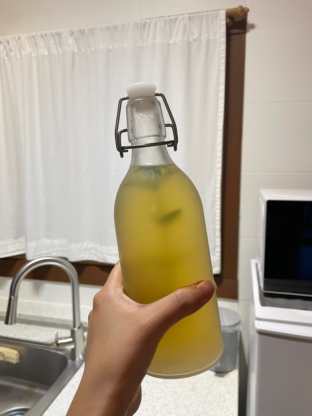 사장님이 냉장고에 넣어두신 웰컴 티(아이스 유자차인 것 같아요.)도 마시면서 흥겹게 체크인!
