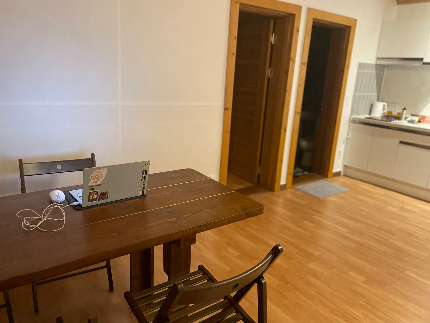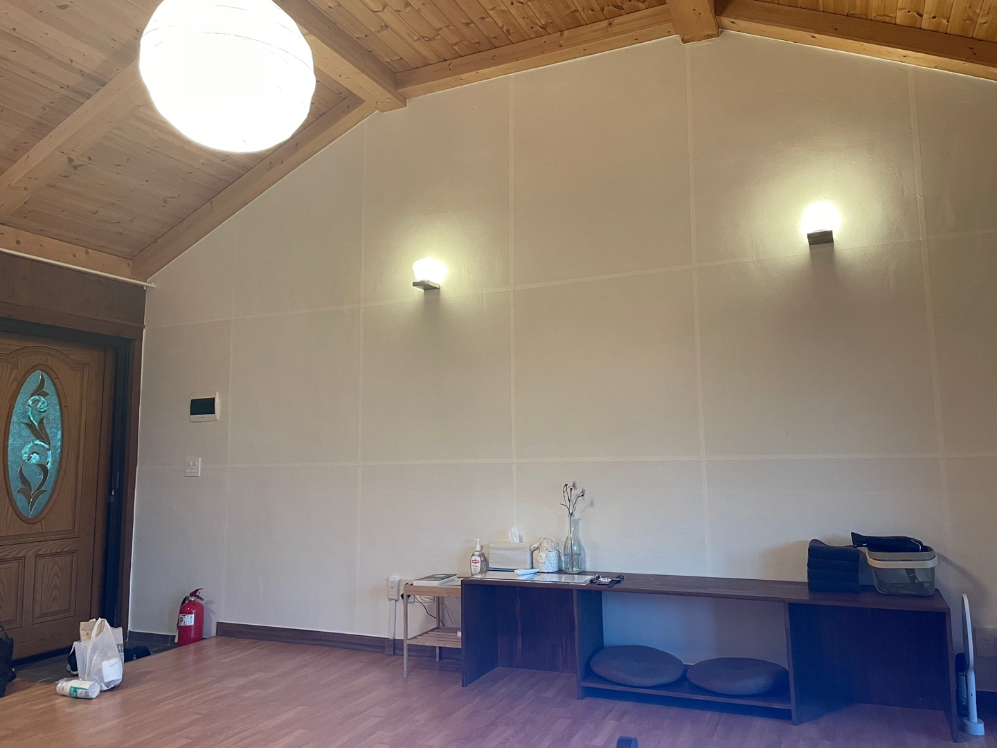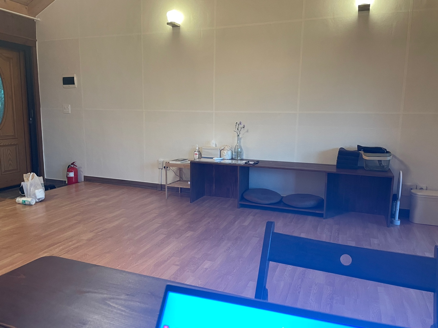 거실로 들어서니 생각보다 넓은 거실에 한 번 놀라고, 방을 보고 두 번 놀랐어요! 흙집에 원목 인테리어라니... 이래서 저녁 8시에 잠들어버린 건 비밀.
