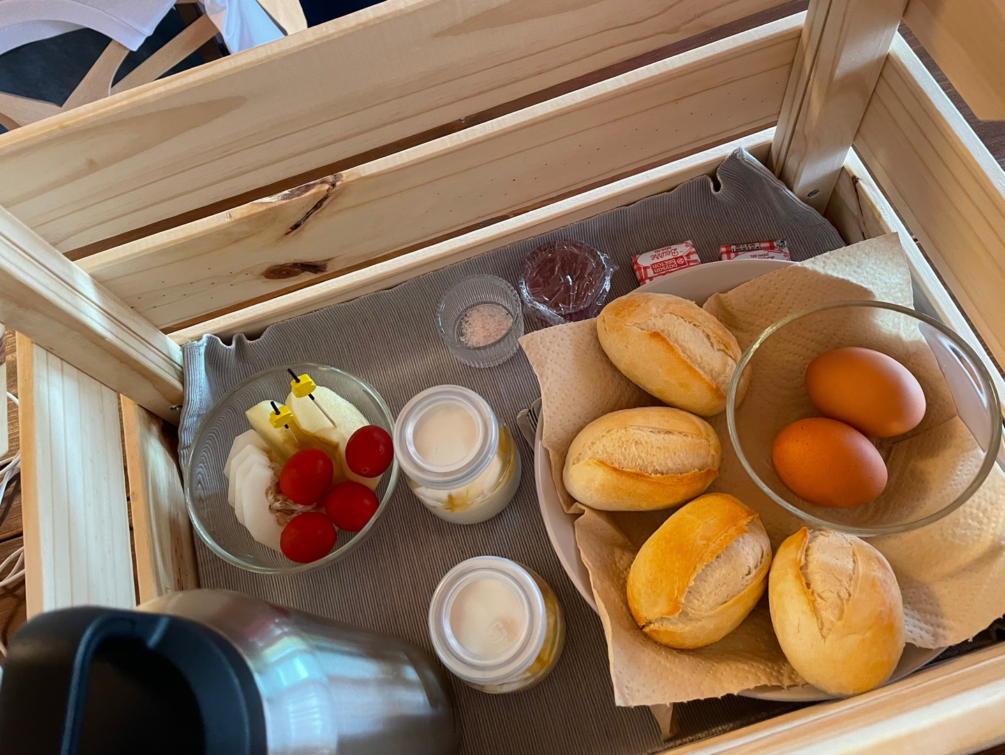기다리고 기다리니 9시가 되었고 사장님이 오셔서 조식을 건네주셨어요.