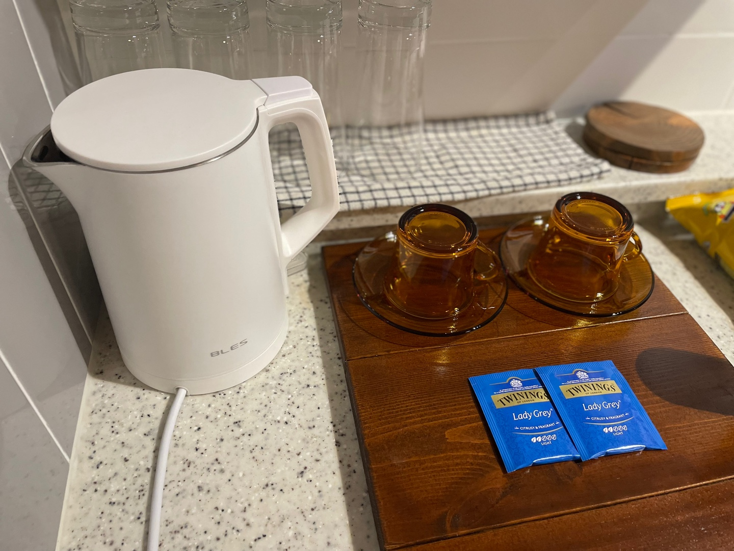티비가 없어서 그런지 흙집이라 잠이 솔솔 와서 그런지, 20시에 잠들어버린 초딩부부는 너무 일찍 일어나게 되는 호사를 누립니다. 그리고 생전 처음으로 숙소에 있는 모든 찻잔을 사용하게 됩니다. 🤣