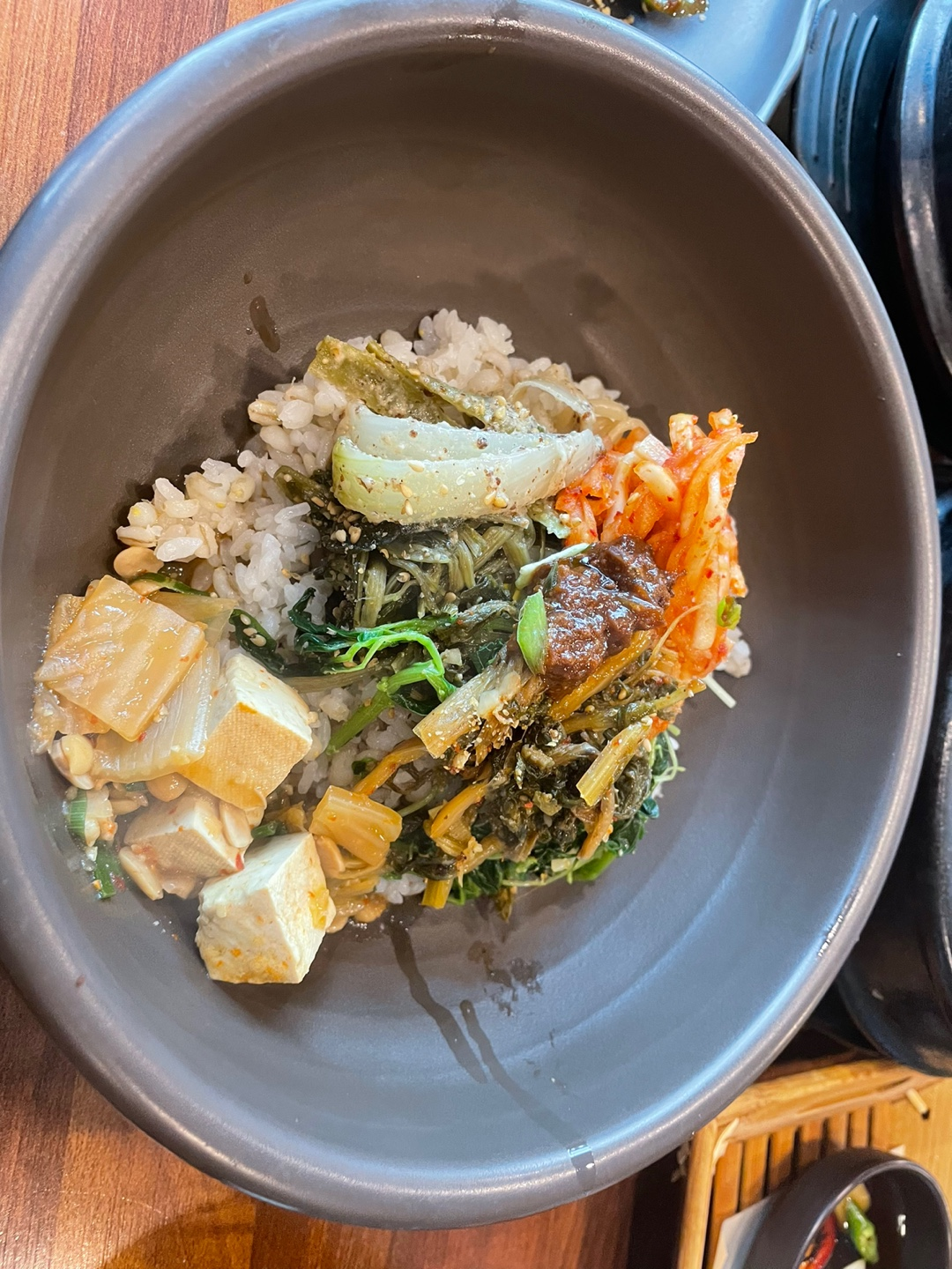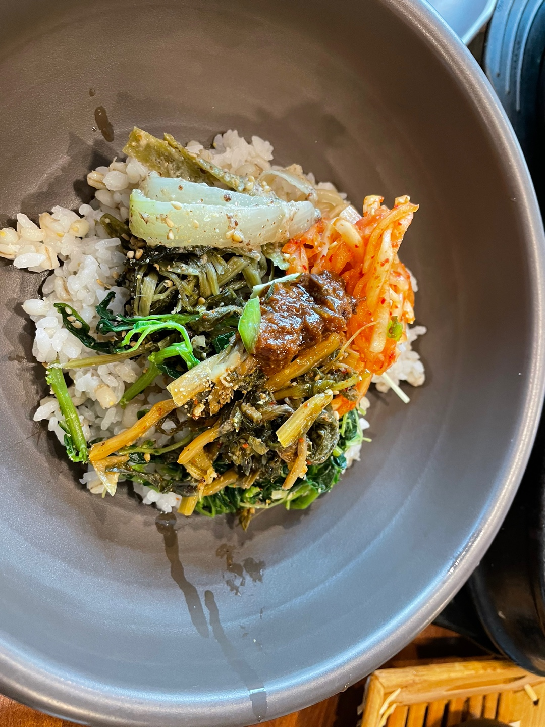 이렇게 넣고 슥슥 비벼 한입! 정말 푸짐하고 맛있는 점심 식사였어요.🖤 가성비 좋은 원주 맛집으로 유명한 이유가 있네요. 엄마를 모시고 오고 싶다는 생각도 들고! 하나하나 감칠맛이 있다기보다는 전체적인 조화가 좋은 집이에요!