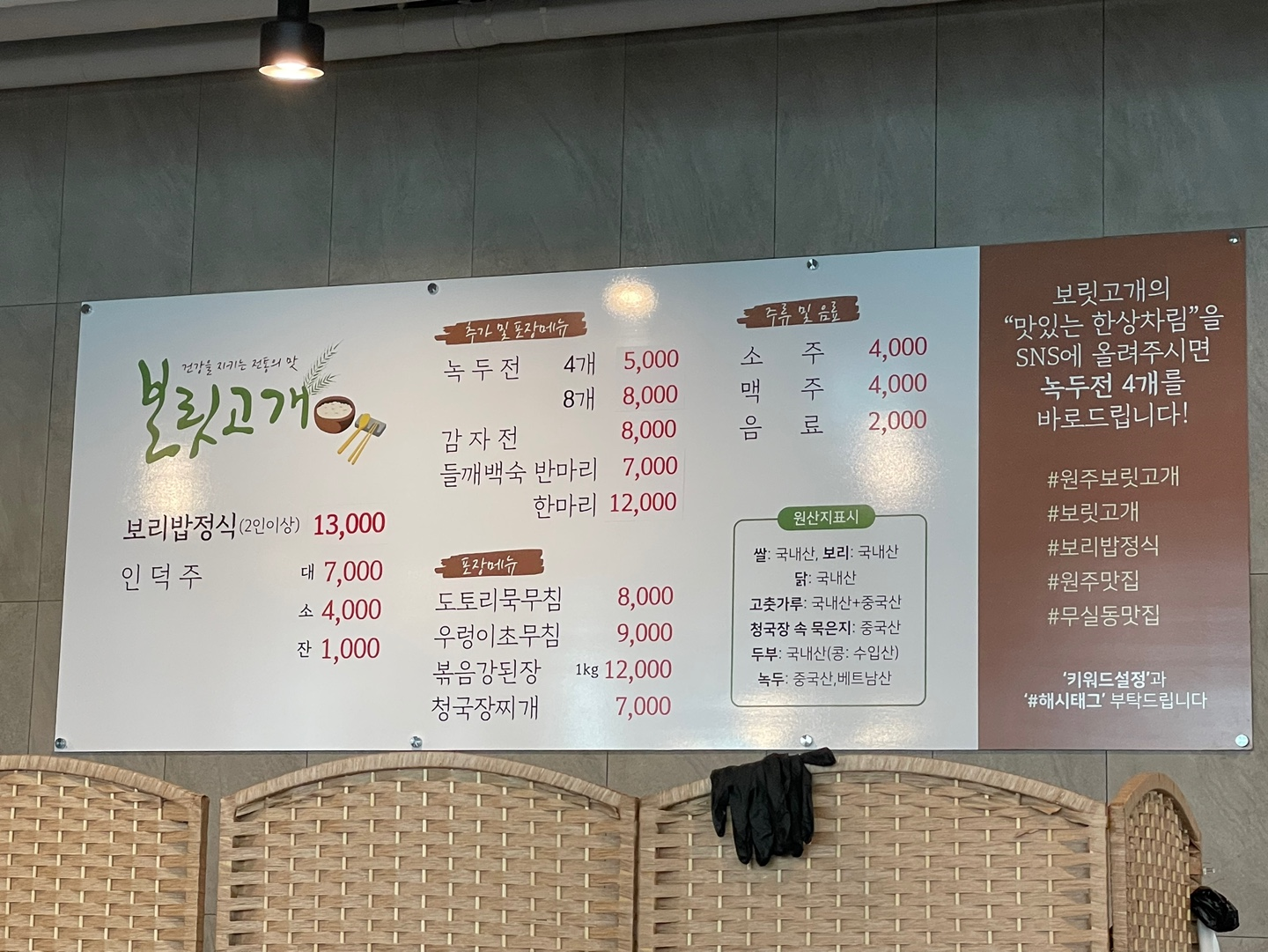 원주 여행 3탄! 이번에는 가성비 좋고 맛도 좋은 맛집 '보릿고개'를 소개하려고 해요.