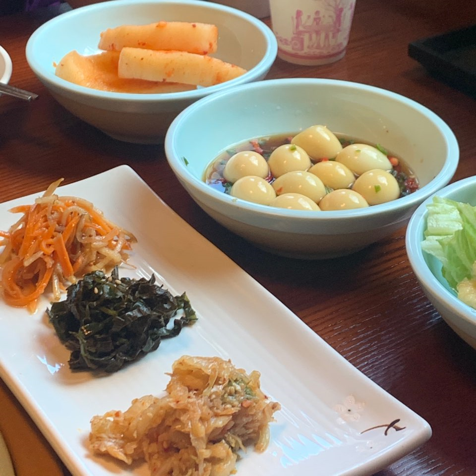 일하시는 이모님께 칭찬 받은 계란 프라이 실력 자랑과 더불어 기본 반찬도 찍어봅니다.