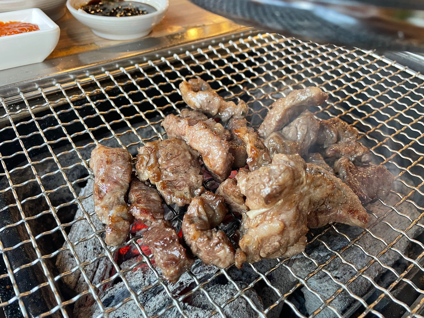 소고기에 숯불 화력까지 합쳐지니 빨리 구워져서 좋더라고요. 시원시원!