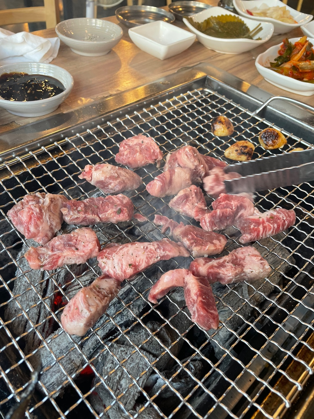 소고기에 숯불 화력까지 합쳐지니 빨리 구워져서 좋더라고요. 시원시원!