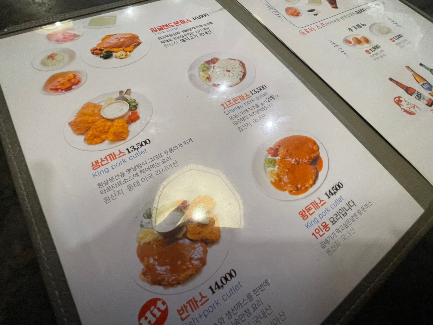 저희는 일반보다 양이 많은 왕돈까스(14,500원) 하나랑 생선까스(13,500원) 하나를 주문해서 나눠먹었어요! 셰어 하지 않으실 경우엔 반반까스를 추천드려요. (양도 많아 보였고 생선까스가 너무 맛있기에!)