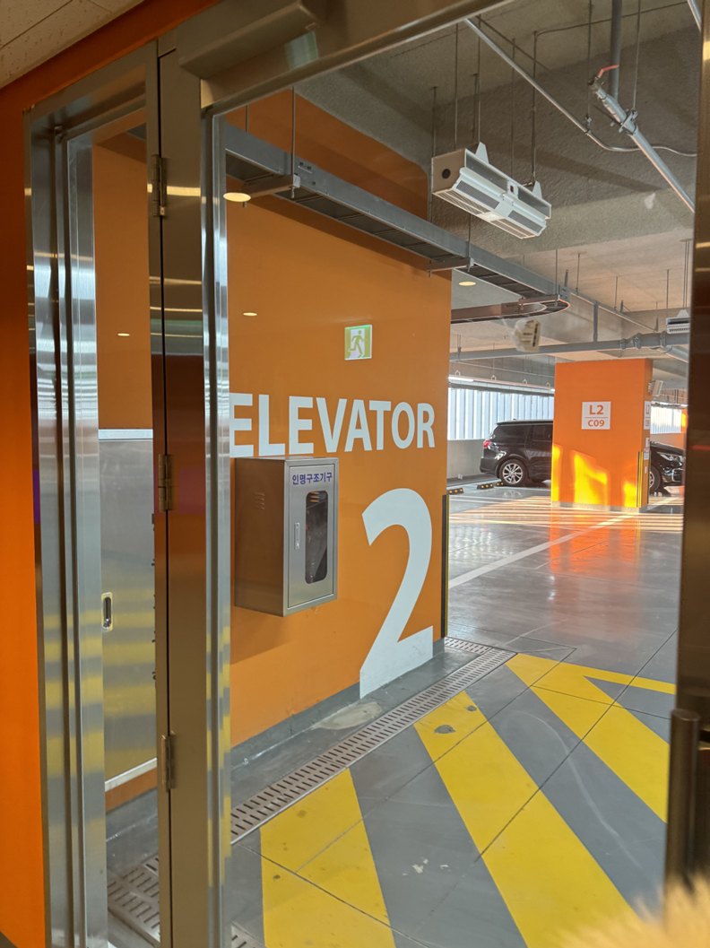 엘리베이터가 생각보다 바로 앞에 있지 않아서 엘리베이터 근처에 세우는 것을 추천드려요. (주차타워 올라가자마자 L2층 C09 혹은 C10 주위)