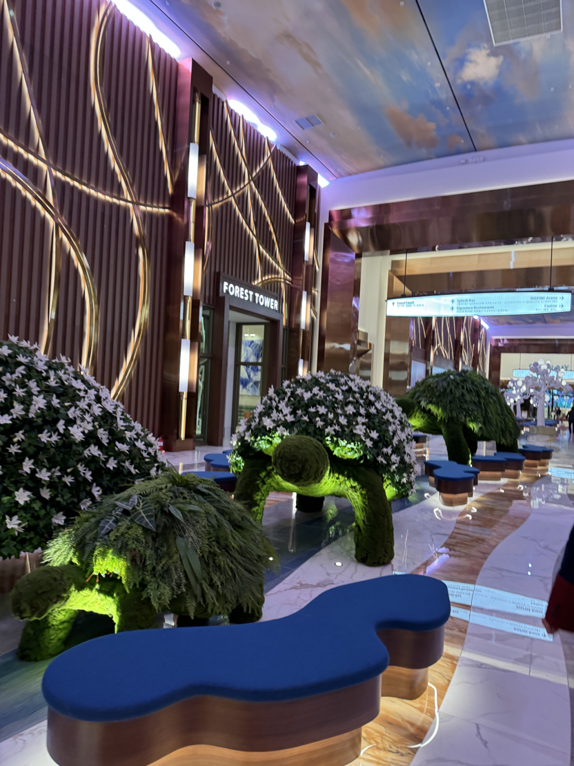가는 길엔 리조트 곳곳의 인테리어를 구경하는 맛이 있었어요. 꽃으로 된 인테리어와 다양한 색의 혼합이 너무 멋있었네요!