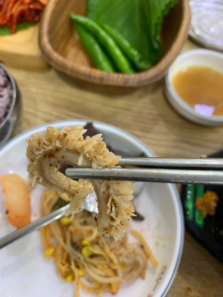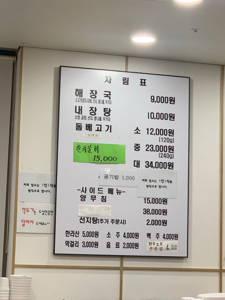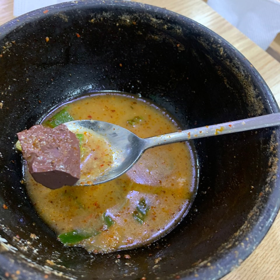 해장국과 다르게 고추기름이 적고, 시원한 맛이 일품이었어요. 물론 저는 고추기름을 요청해서 팍팍 넣어먹었지만. 간은 제주에서 먹은 해장국이 훨씬 자극적이고 쎘고, 이곳은 시원하게 맛있는 맛입니다. 제일 인상적인건 그 비싸다는 양과 내장류가 많다는 점! 해장국에 들어있는 건더기가 워낙 많아서 공기밥은 거의 손도 안댔습니다 :) (우연한 키토제닉 완성)