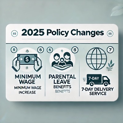 2025년은 최저임금 1만 원 시대, 육아휴직 급여 인상, 주 7일 배송 서비스 도입 등 많은 변화가 이루어지는 해입니다.
