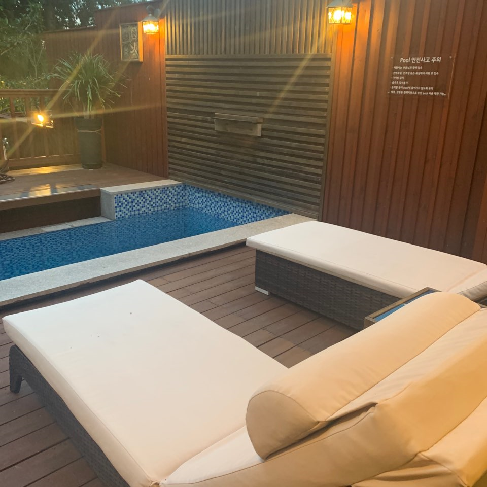 이곳이 더욱 좋은 이유는, 프라이빗 야외 풀장을 둘러싼 숲의 위엄! 도심 한복판이 아닌, 자연 속에 '우리'만 있는 느낌이 들어요. 지금 생각해보면 진정한 '격리 휴가'가 아닐까 싶은.