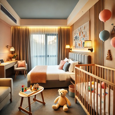 👉🏻편의시설: 아기 침대, 유아 식기, 이유식 서비스 제공 여부 체크