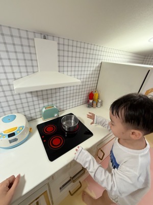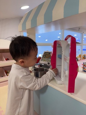 2층에는 주방놀이 세트, 블록, 자동차 장난감, 1층으로 이어지는 미끄럼틀까지 있어서 아이들이 너무 좋아했어요. 여기에 있는 장난감만으로도 몇 시간은 충분히 놀았어요.