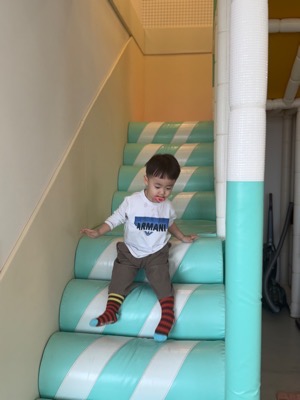 가장 걱정됐던 부분이 계단이었는데, 여기는 계단조차도 매트로 안전하게 마감되어 있어서 정말 감동했어요. 2층 놀이공간으로 이어지는 계단인데, 넘어져도 걱정 없이 마음껏 뛰어놀 수 있었어요.
