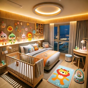 ⭐ 특징: 실내 키즈카페, 아기 욕조 & 침대 가드 제공