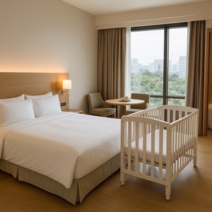 ✅ 침대: 아기 침대 대여 가능 여부, 또는 침대 가드 제공 여부