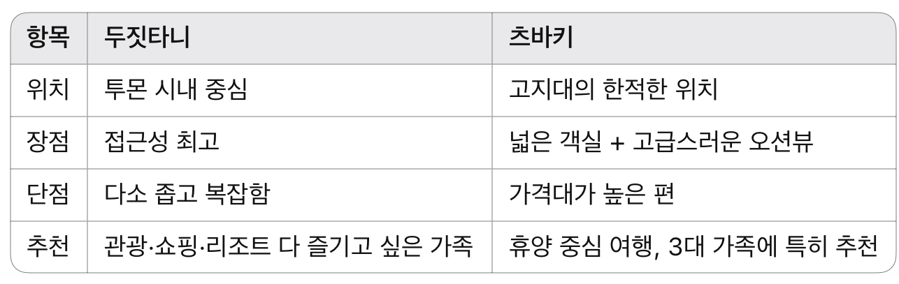 🏨 숙소 비교: 두짓타니 vs 츠바키 리조트