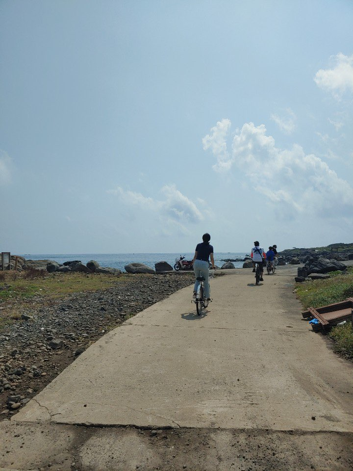 차가 많이 다니지 않는다는 점이, 제가 꼽은 최애 포인트입니다. 비슷한 예로 우도의 경우 좁은 길 사이로 도보 여행자, 차 여행자, 오토바이 및 각종 스쿠터 여행자가 혼재되어 많이 불편하더라고요. 특히 가족 여행이다 보니 안전의 문제가 가장 신경 쓰였어요. 가파도는 기본적으로 차가 다니지 못하는 길이 많고, 다니더라도 경차가 간혹 보이는 수준입니다. 가족끼리 자연에 집중하며 한적하게 자전거나 도보 여행하기에 참 좋아요 :) - 비 상업화 느낌