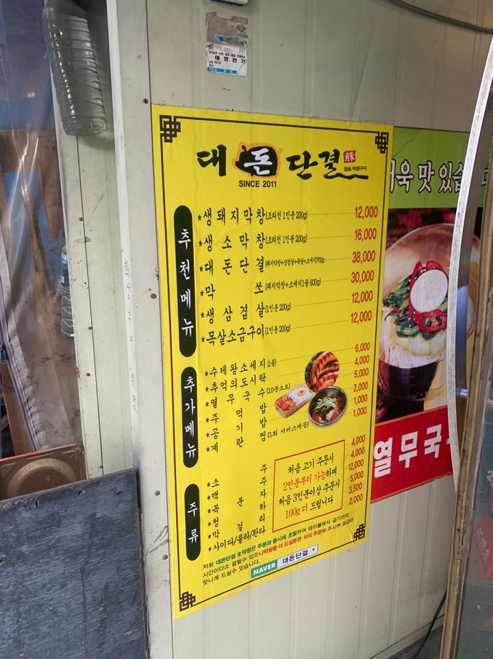"전국 맛집러"인 동생이 공들여왔던 맛집이라, 다른 후보는 제안할 수도 없었어요. 인천 도림동에 위치한 대돈단결은 생 돼지 막창과 수제 소시지가 유명한 집이라고 해요. 막창 맛집이면 또 술이니까, 바로 택시를 잡아 탔죠.