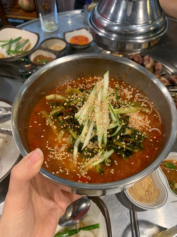 개인적인 순위는 목살 > 돼지 막창=수제소세지 > 삼겹살 입니다. 목살은 정말 기대 이상이에요. 일단 맛은 개런티되었으니 바로 열무국수 주문!