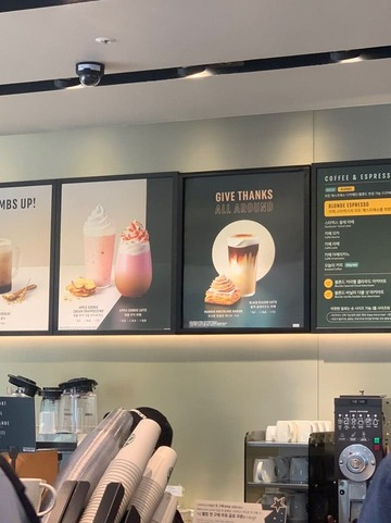 스타벅스에 진입하여 빠르게 QR 체크인을 해주시고, 블랙 글레이즈드 라떼 주문을 합니다.