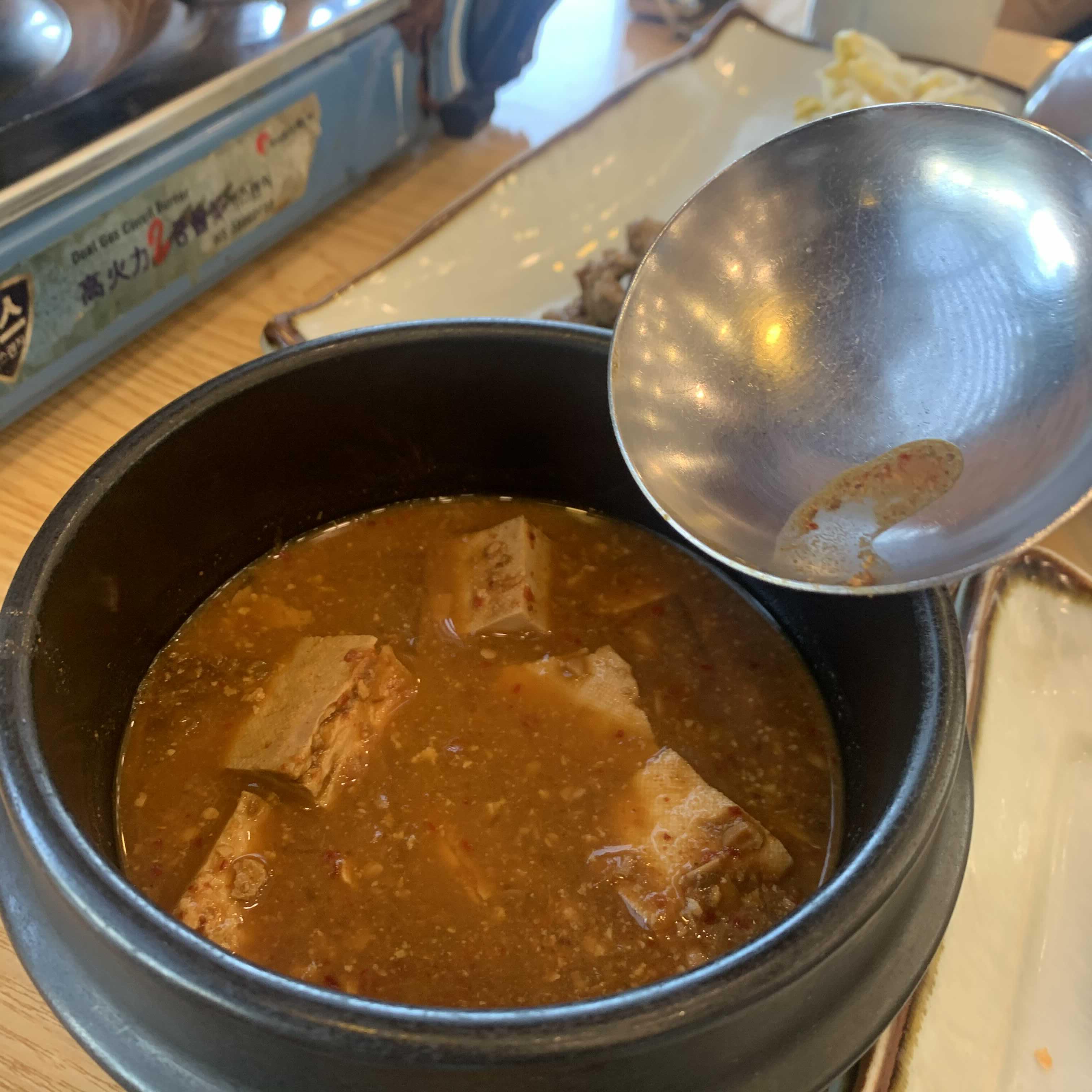 짭짤하고 얼큰한 청국장은 굉장히 맛있었어요. 다른 리뷰에는 전을 좋아하셨는데, 솔직히 이 전은 저희 스타일은 아니었어요.