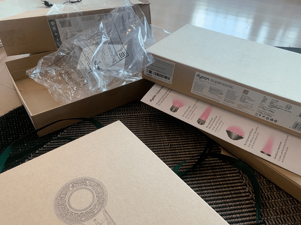 사실 다이슨 헤어드라이어 실체를 이미 너무나도 알아버린 상황이라 과대포장이란 게 더 크게 체감되더라고요. 다이슨 헤어드라이어를 향해 크고 작은 상자를 벗겨내면 드디어...