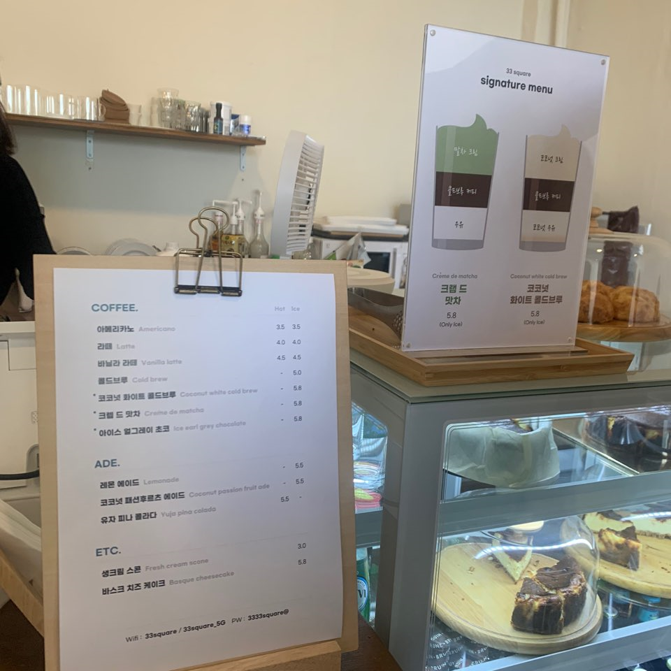 우선, 메뉴 사진부터 보시지요. 33 Square에서 자랑하는 시그니처 커피 메뉴입니다!