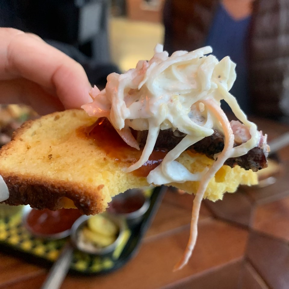 우선, 달콤 매콤한 소스가 고기와 잘 어울립니다. 로코스 바베큐와는 다르게 콘브레드가 무척 바삭한 것이 특징인데 위에 고기를 올려 싸 먹기도 좋고, 바삭하고 담백해서 느끼함을 덜어주기도 하더라고요.