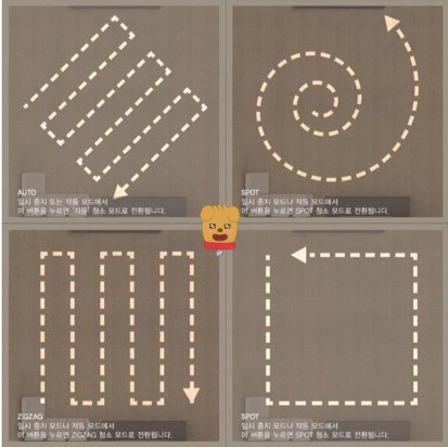 위의 사진 이미지처럼 청소하려는 면적에 가장 적합한! '청소 형태'를 지정할 수 있습니다.