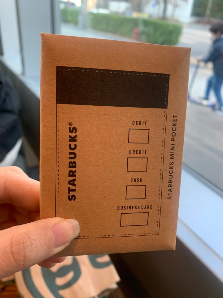 생각보다 얇고, 딱 1, 2년 정도가 베스트일 것만 같은 내구성입니다. 다이어리에 붙일 수 있는 양면테이프와 함께 제공돼요. 미팅 시 깜빡할 수 있는 명함이나, 비상용 카드 같은걸 넣어두면 좋겠어요. 이런 색다른 조합이 스벅 팬에게는 즐거운 일이에요.